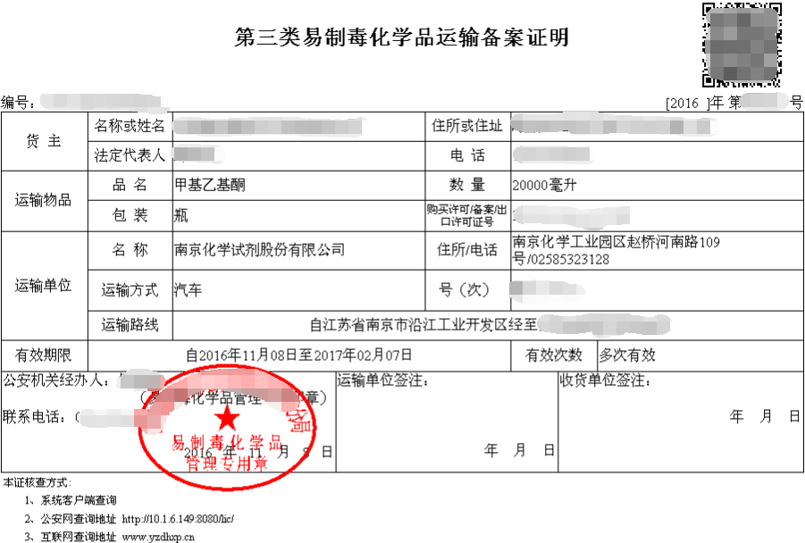 4.易制毒化學品運輸備案證明審批下來后,銷售方即可安排發貨。