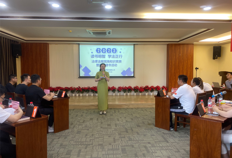 下午1時30分,活動正式開始。公司團總負責人致辭,指出合規經營是企業發展的基礎,讀幾本法律書籍是人生的必修課,號召團員青年及廣大員工加強讀書學習,不斷提高法律素養,并落實到自覺的守法行動,做到知行合一,弘揚正氣,維護正義,傳遞正能量,推動企業守正創新,行穩致遠。