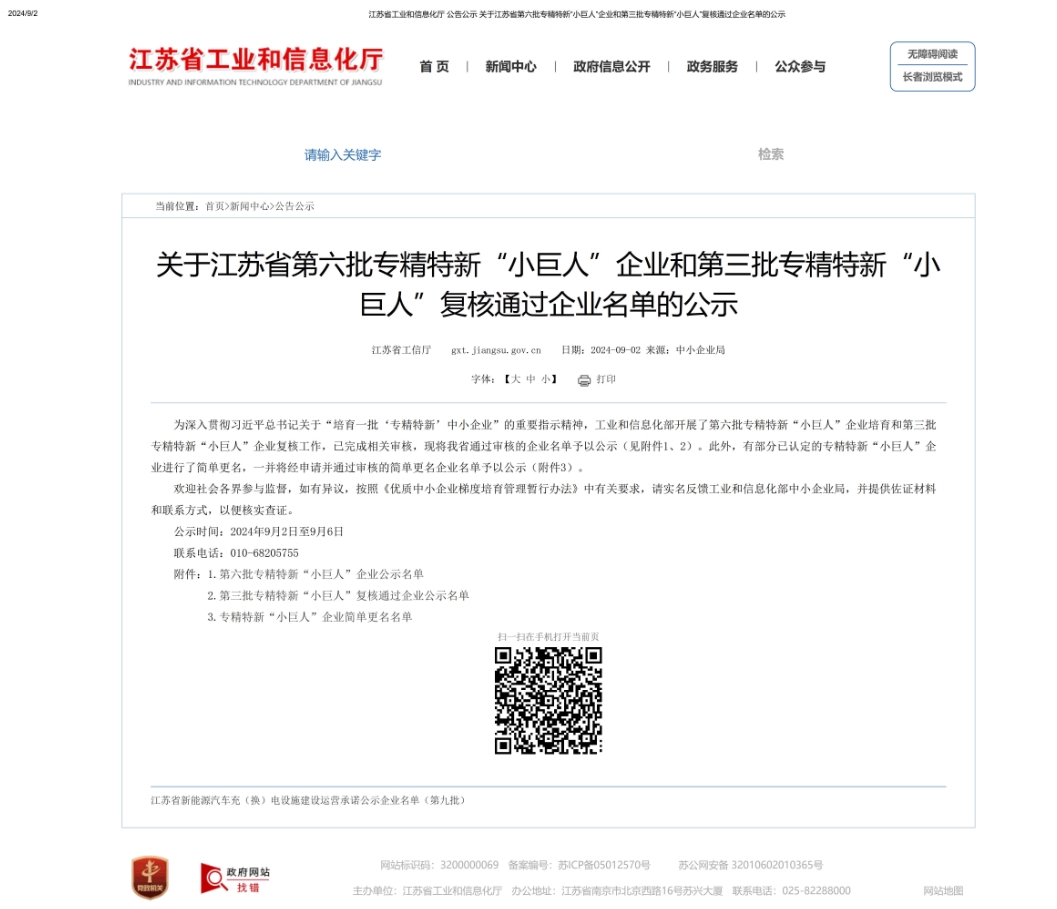 近日,江蘇省工業和信息化廳發布了《關于江蘇省第六批專精特新“小巨人”企業和第三批專精特新“小巨人”復核通過企業名單的公示》,南京試劑已通過審核,入選第六批國家級專精特新“小巨人”企業。